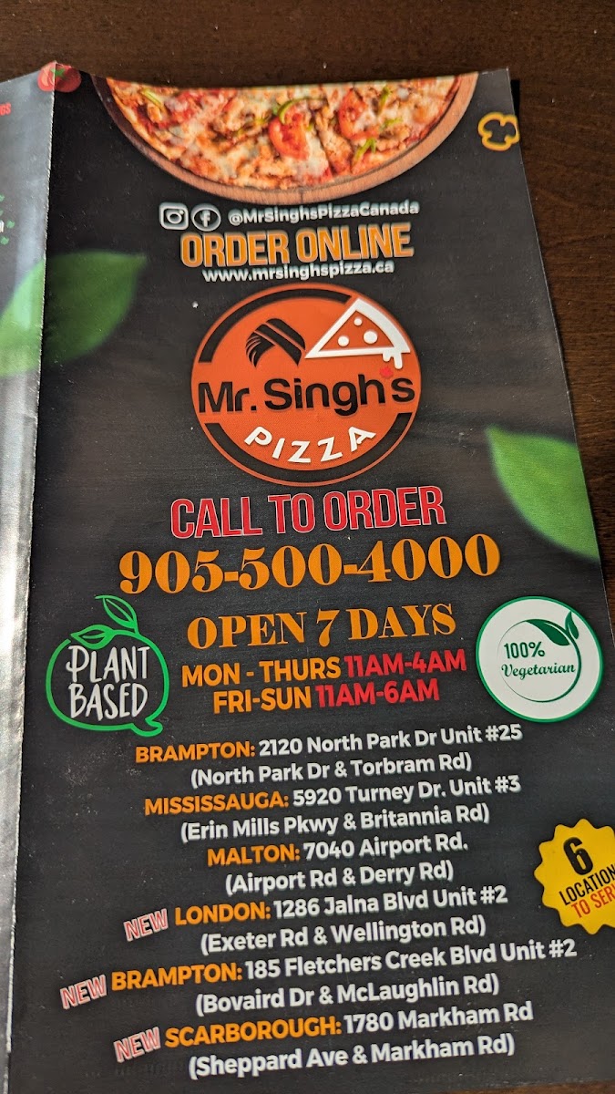 Discover the vibrant menu at Mr. Singh's Pizza in London, ON, where Indian-inspired flavors meet classic pizza creations. Located at 1286 Jalna Blvd, this establishment is known for its unique twist on traditional pies. Highlights of the menu include the Tandoori Paneer Pizza, celebrated for its freshness and generous toppings, and the Achaari Pizza, offering a milder take on the expected flavorful kick.